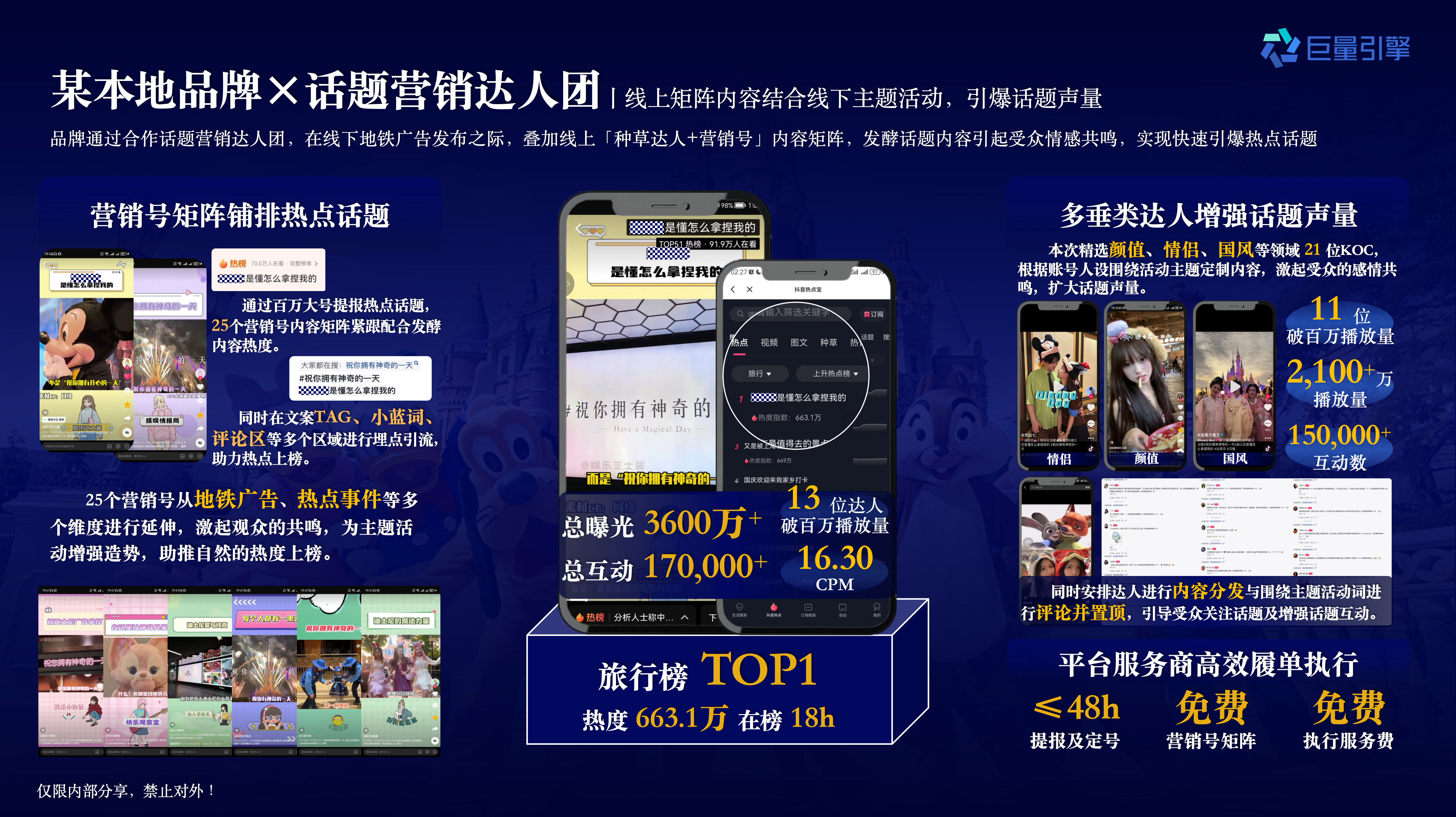 在线下地铁广告发布之际,叠加线上「达人+营销号」内容矩阵,发酵话题内容引起受众情感共鸣,实现快速引爆话题冲上旅行榜Top1。